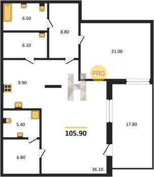 Площадь от 60.7 м2